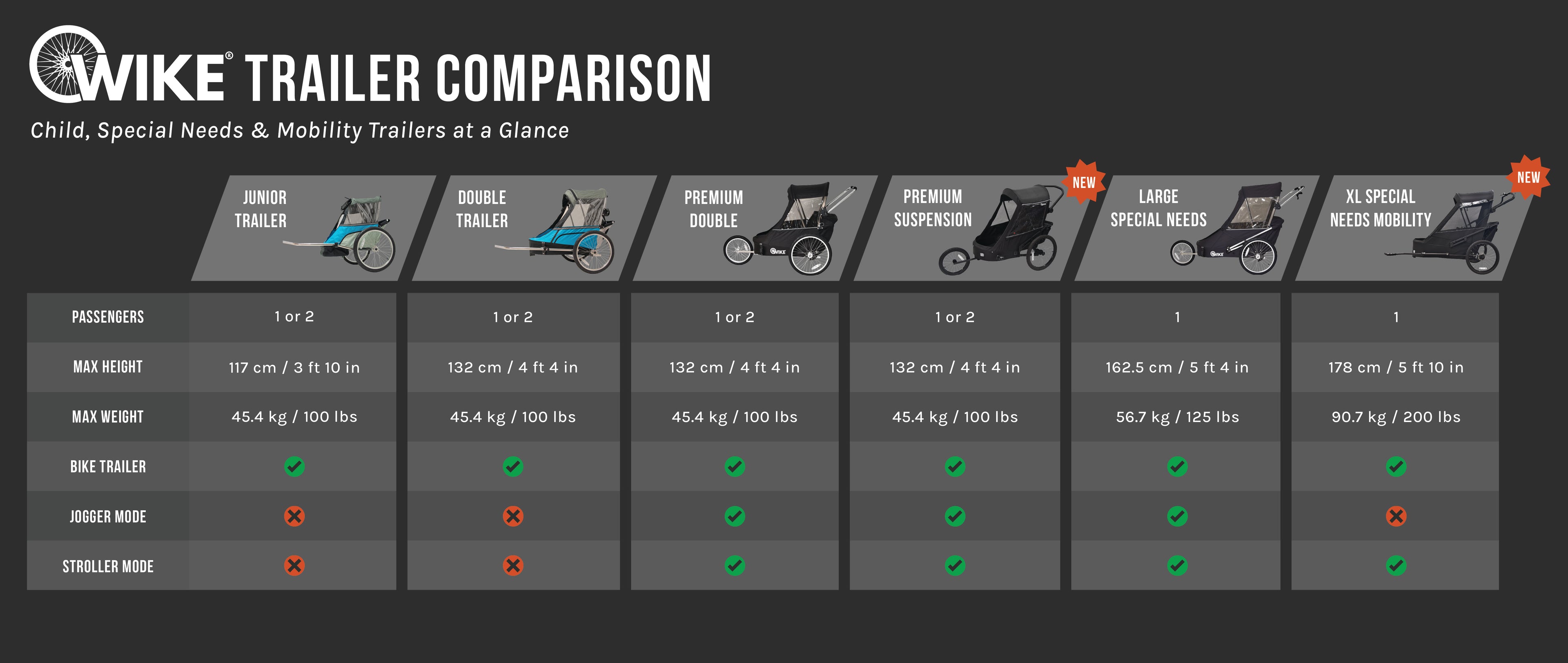 Wike Premium Double Children's Bike Trailer - Includes Stroller and Jogging Kit