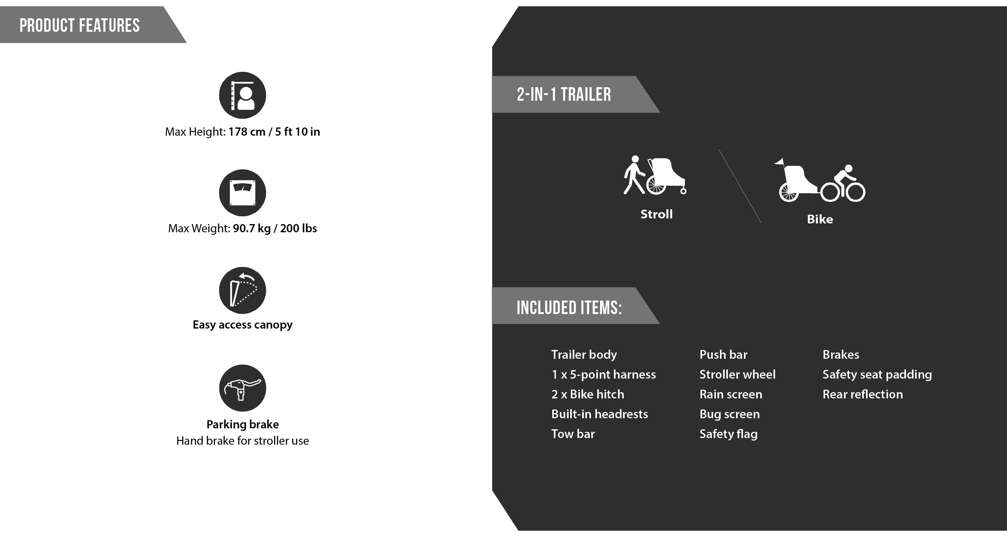 A reinforced aluminum frame with weather-resistant retractable canopy ensure durability and easy access, making transfers smoother for caregivers and more comfortable for passengers. Designed with comfort, safety, and functionality in mind, this trailer is the ultimate solution for inclusion, accessibility, and outdoor fun.